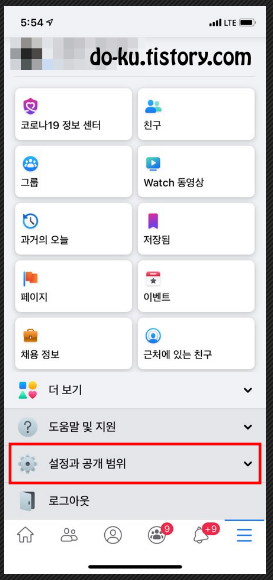 여기서 본인 타임라인과 게시물에 대한 공개범위 설정을