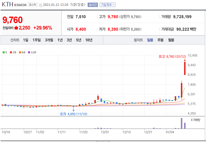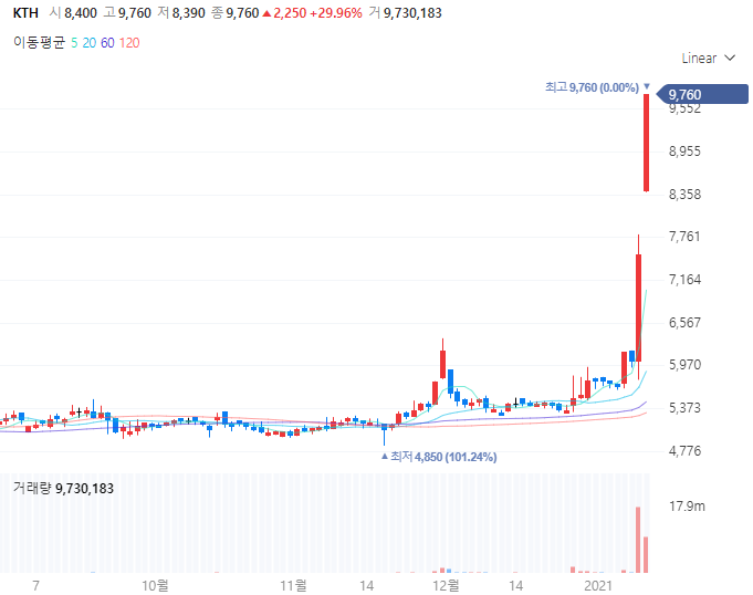 KTH의 주가 흐름을 보면 꾸준하게 성장하고 있었으며