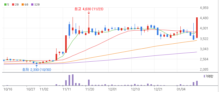 4,500원으로 상한가를 기록하였습니다.
