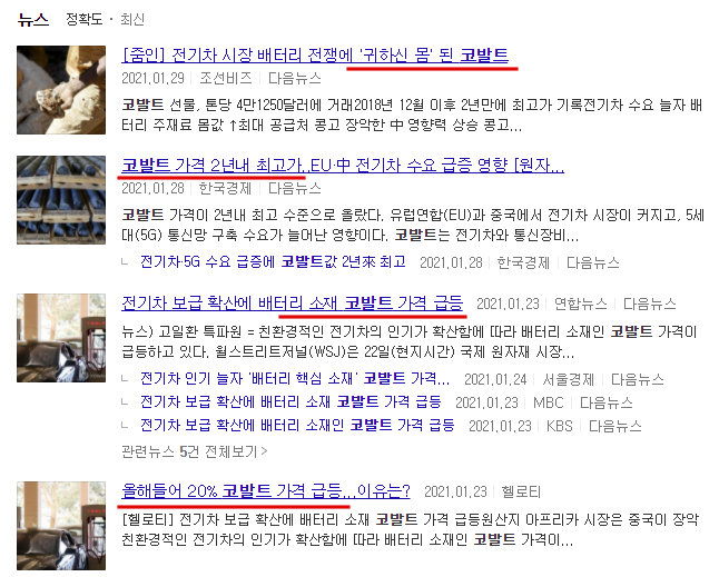 전기차 배터리의 핵심 소재인 코발트의 가격이