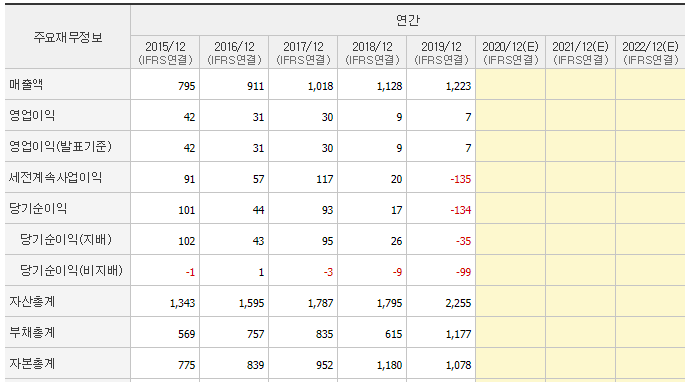 2020년 연결기준 총매출 1126억 원으로 전년대비 7.9% 감소하였지만