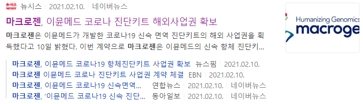 마크로젠은 국내 이뮨메드 기업에서 개발한 코로나 19 신속 면역 진단키트의
