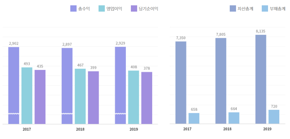 매년 꾸준하게 흑자를 유지하고 있지만 영업이익과 당기순이익 부분에서