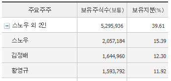 스노우는 네이버의 자회사인데 알체라 기업의 최대주주가