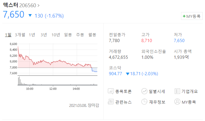 지난 3월 3일 상한가를 기록한 바 있습니다.