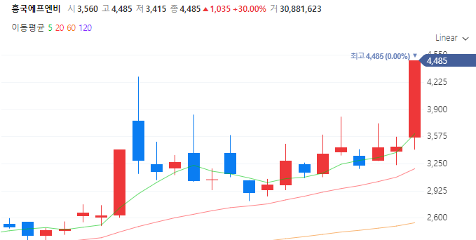 흥국에프엔비의 상승세는 이제 시작이라고 생각할 수 있으나,