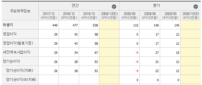 꾸준하게 매출과 영업이익을 보여주고 있으며