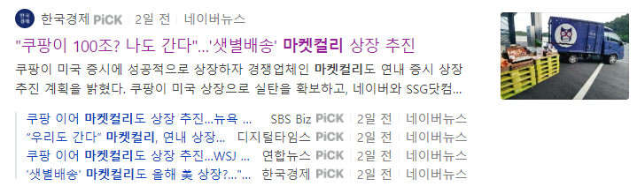 마켓컬리의 뉴욕증시 입성한다는 기사가 전해지면서