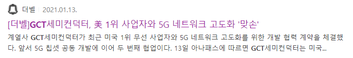 지난해 GCT는 미국의 1위 무선 사업자와 5G 칩셋을 공동 개발 협력 계약을