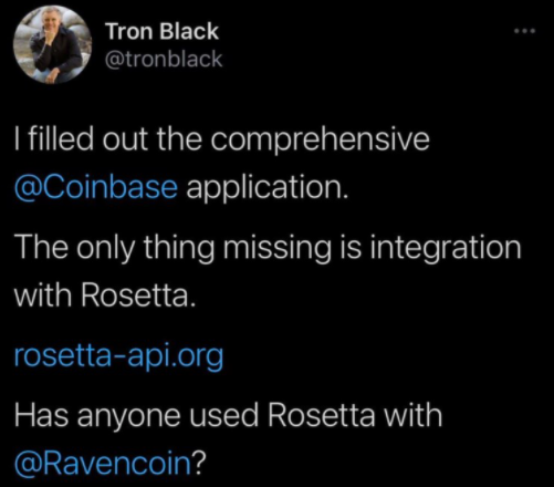 최근 레이븐 코인의 수석 개발자 트론 블랙이 코인베이스에 상장 신청하였는데