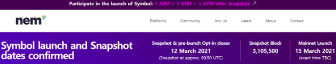 1 : 1 비율로 넴 코인(XEM) 보유자에게 심볼코인 (XYM)을 지급 예정으로