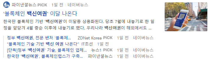국가 질병관리청에서는 블록체인 기술 기반 '디지털 백신 여권' 발행 의사를