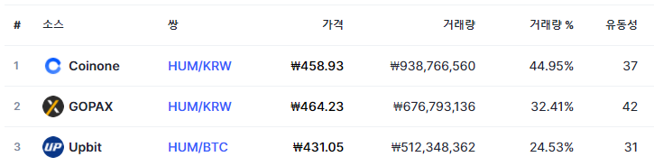 휴먼스케이프 코인은 업비트와, 고팍스, 코인원에 상장되어있으며