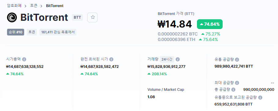 유통 공급량 989,980,422,741 BTT