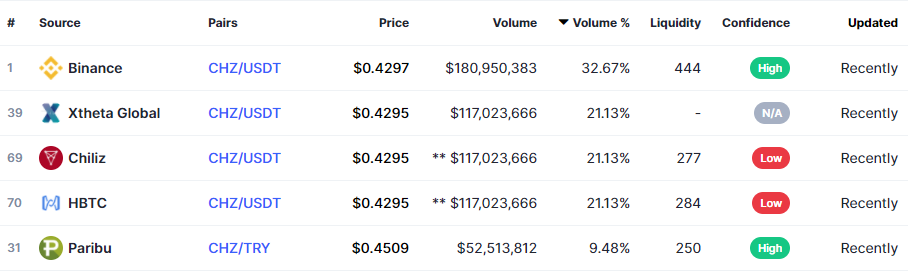 칠리즈코인이 상장되어있는 거래소는 바이낸스 등을 포함한 해외거래소에서