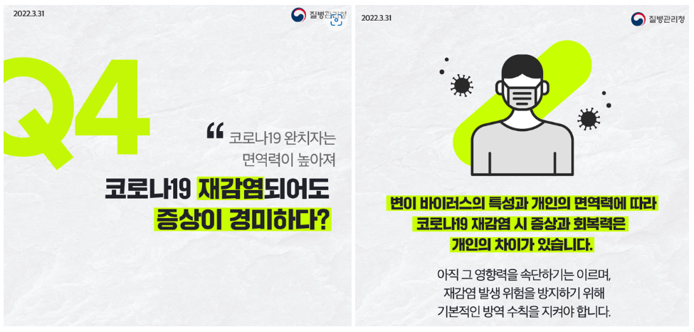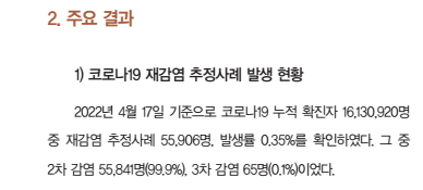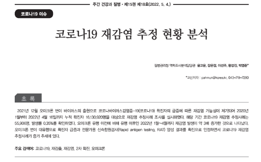 실제로 2022년 5월 질병관리청의 역학조사분석 담당관 5명이 코로나 재감염에 대한 분석을 내놓았습니다.