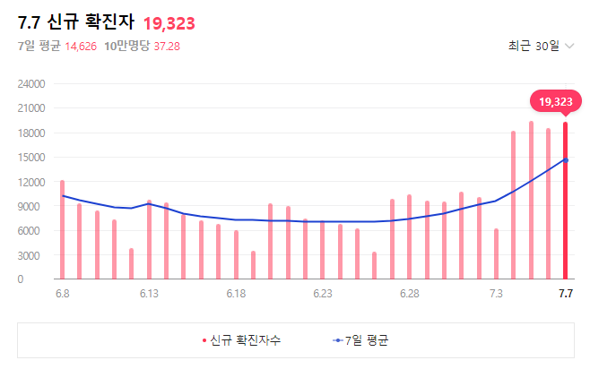 잠잠했던 코로나19 바이러스 일일 확진자가 재차 2만 명에 가까워지면서 두배 이상 급증하고 있습니다.