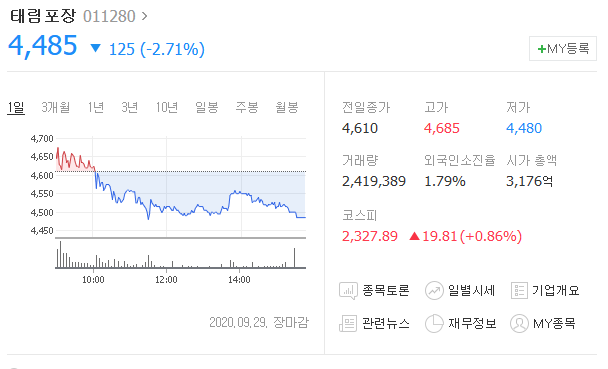 최근 코로나19 재확산으로 골판지 관련주인 태림포장이 강세를 보였습니다.