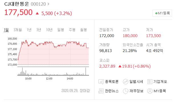 식당 같은 경우는 낮과 저녁시간 까지는 이용할 수 있지만, 밤 21시부터는 사회적 거리두기 2.5단계 실시로 포장과 배달만 가능하게 되었습니다. 이렇게 포장과 매달의 수요가 급격하게 늘어나면서 한익스프레스와 같은 배송, 물류, 관련 기업이 상승세를 보이고 있습니다.