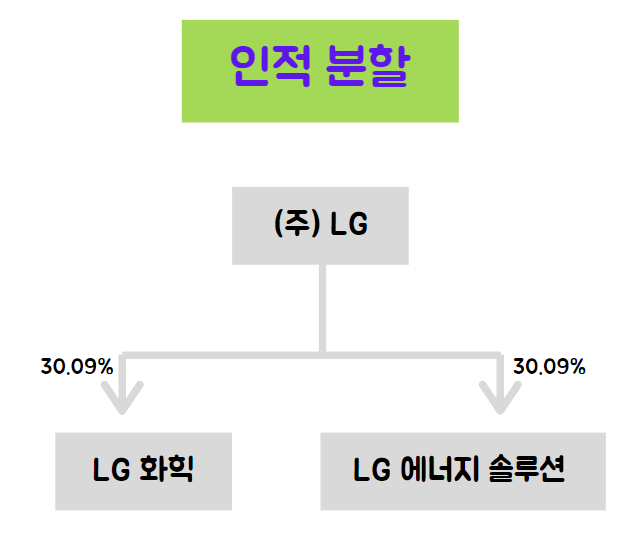 인적분할이란 기본 회사의 주주들이 본인들이 소유한 비율대로 신설법인 주식 (LG에너지 설루션)을