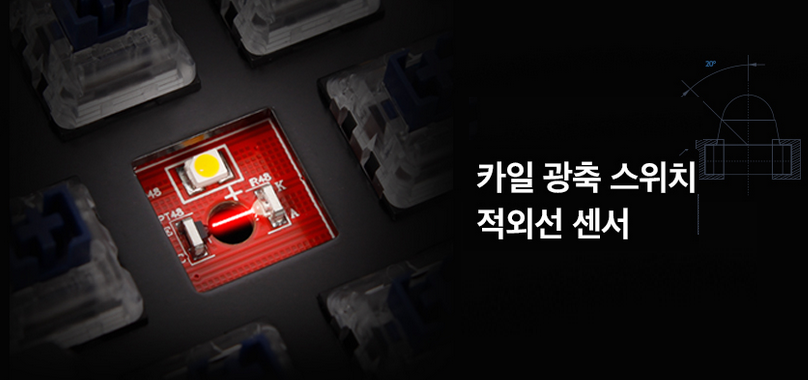 높낮이가 다른 인체공학적인 키캡으로 구성되어있어 각 키간의 명확한
