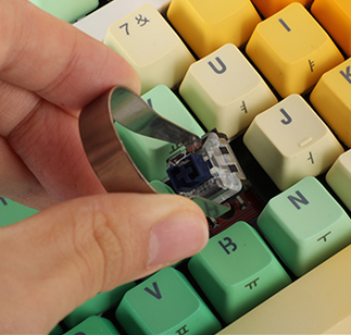 2. 키 스위치 리무버를 사용하여 키 스위치 상하 부분을 잡고