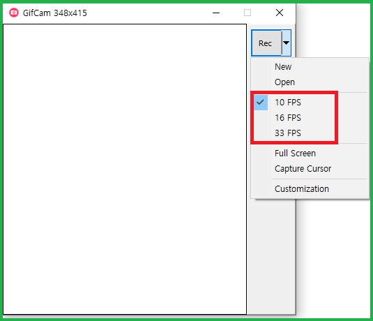 다운로드한 GifCam을 실행하시면 위와 같은 프로그램이