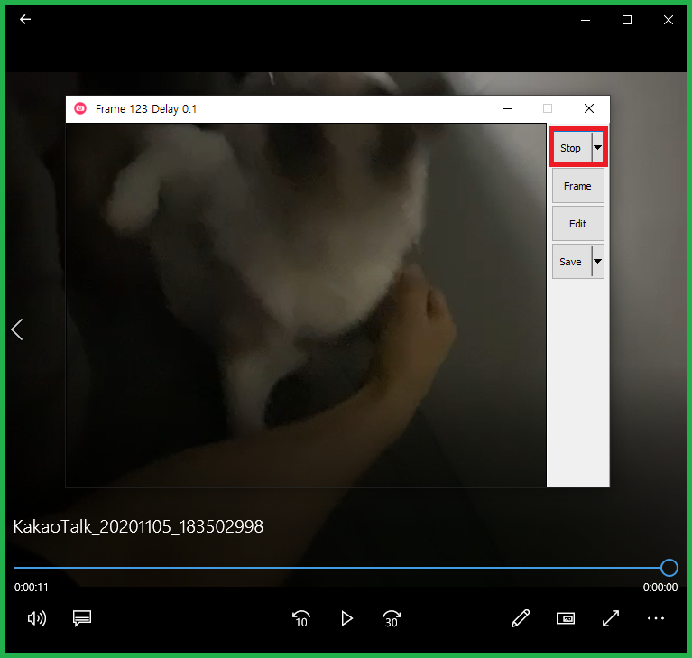움짤로 만들 구간의 마지막 지점에서 STOP를 눌러주시면 녹화가 중지됩니다.