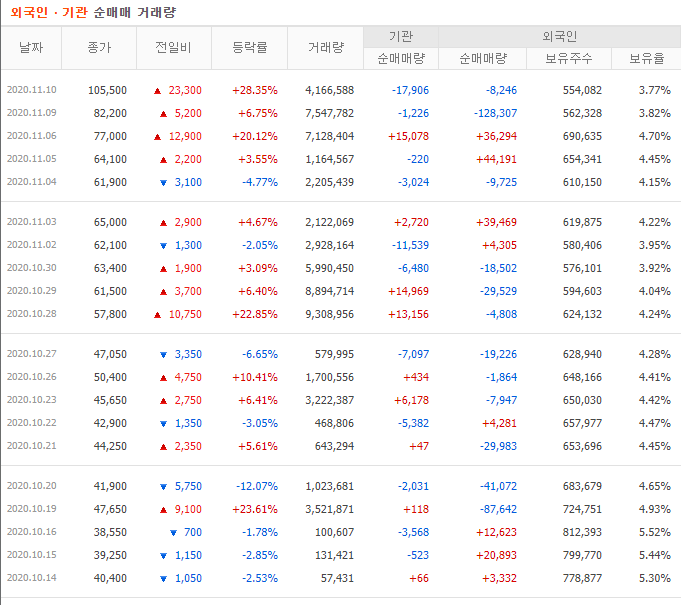 새벽만 하더라도 +12.9% 상승의 모습을 보였지만