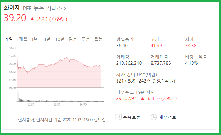 위에서 언급한 것처럼 국내의 화이자 관련주로 보이는 것은