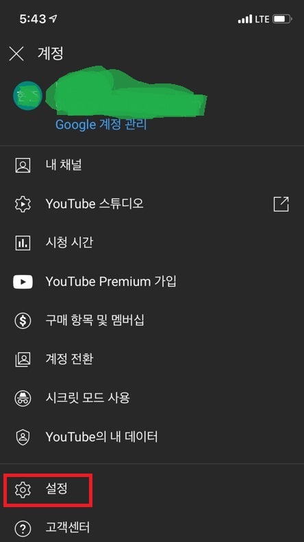 1. 유튜브 상단 위 본인 계정 터치