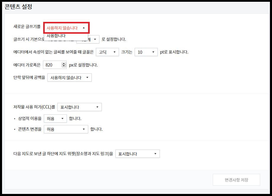 설정에서 새로운 글쓰기를 사용하지 않습니다로 변경해주시고