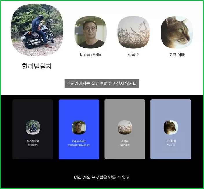 않은 나라는 사람을 위해서 카카오에서 준비한 것이 바로 멀티 프로필 기능입니다.
